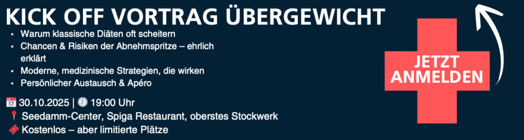 Im neuen Adipositas Zentrum in der Swiss Permanence beim Seedammcenter, unterstützen wir Sie mit einem interdisziplinären Team aus Fachärzten, medizinischer Ernährungsberatung und Coaches auf dem Weg zu einem leichteren Leben. Bei uns geht es nicht um den nächsten Diät-Trend, sondern um echte, langfristige Lösungen – individuell, medizinisch fundiert, menschlich.